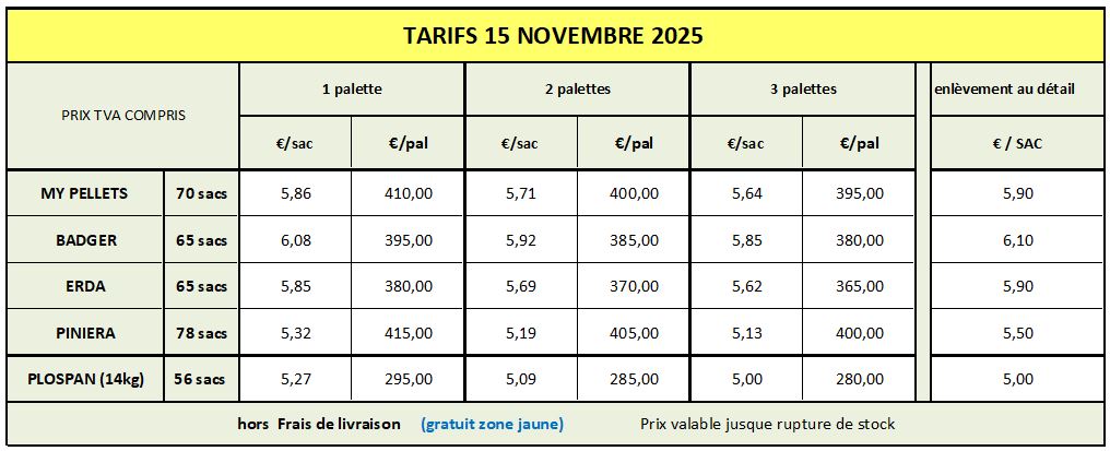 Un supplément sera réclamé pour une livraison inférieur à une palette.